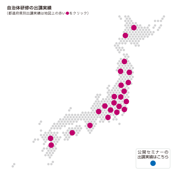 | 秋田県 | 秋田県自治研修所 | 2003−2005 | 自治体マーケティング | 2日研修 | 倉持忠毅 二見眞義 |